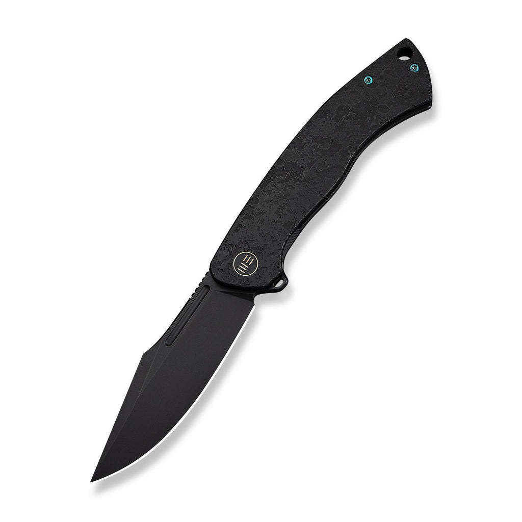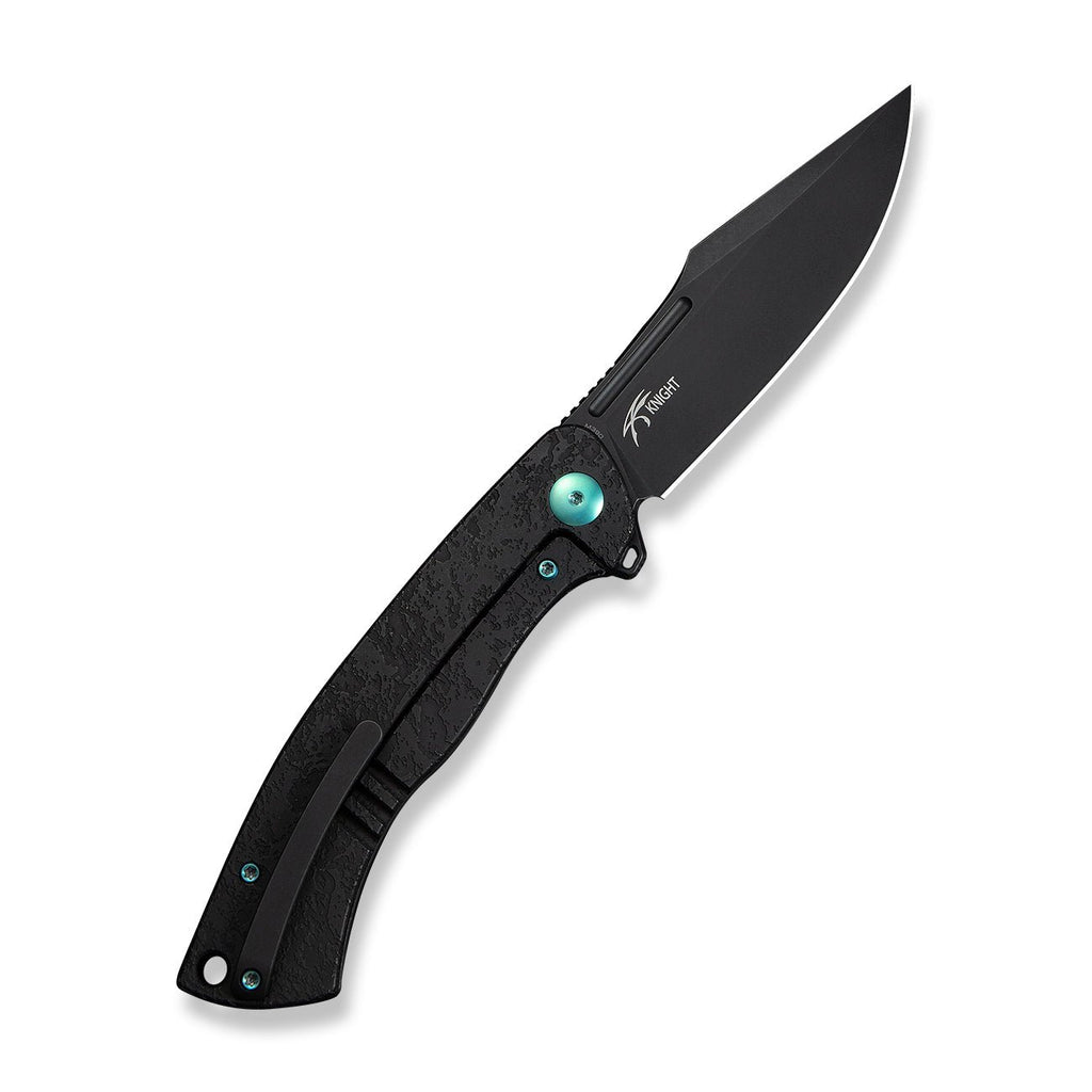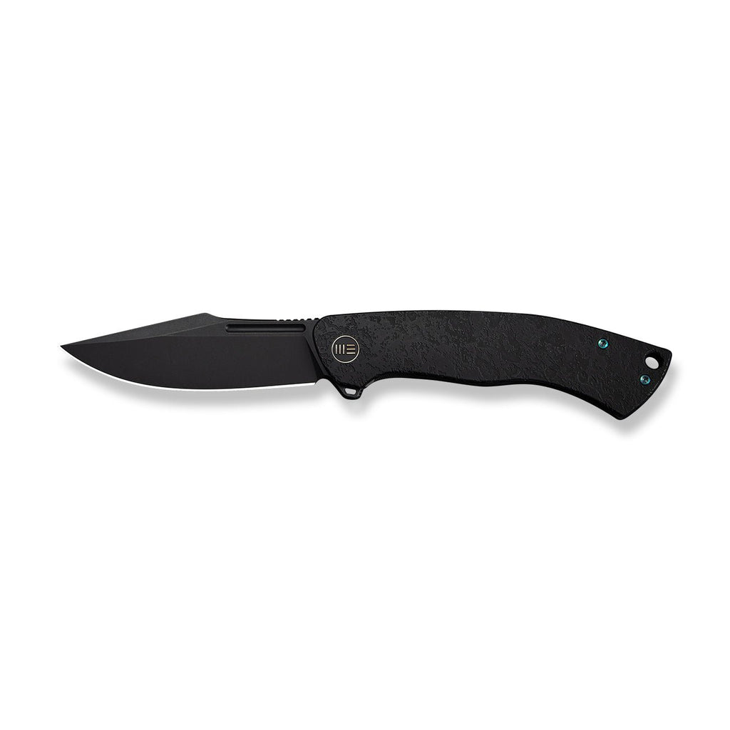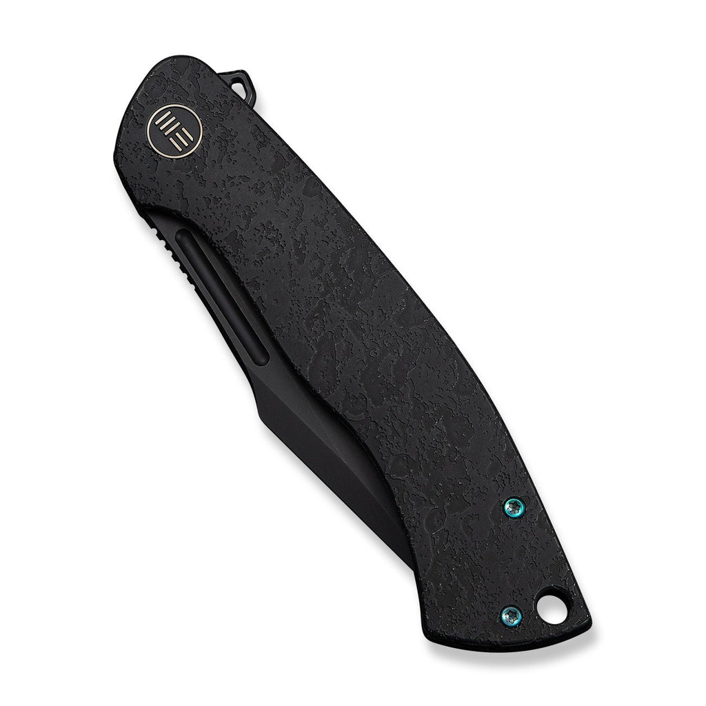 WEKNIFE Essential Knight Flipper Knife Black Titanium Handle With Etched Pattern (3.6" Black Stonewashed Bohler M390 Blade) WE24003-2
