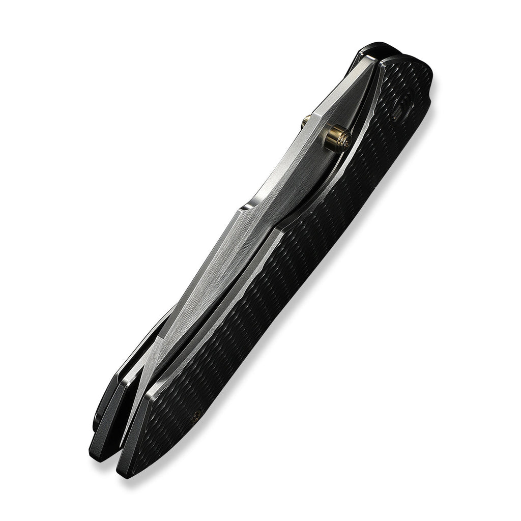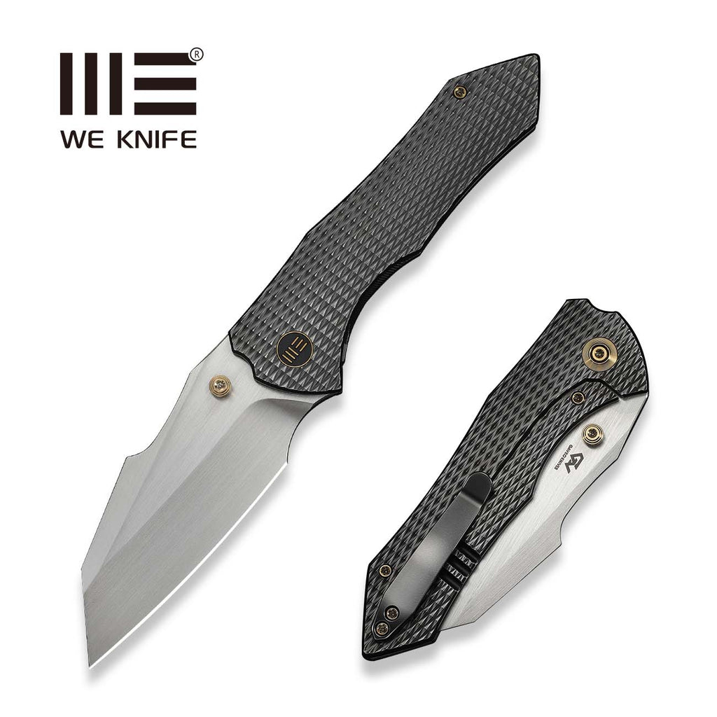 WEKNIFE High-Fin XL Thumb Stud Knife Diamond Patterned Polished Gray Titanium Handle (3.48" Hand Rubbed Satin CPM 20CV Blade) WE24010-6