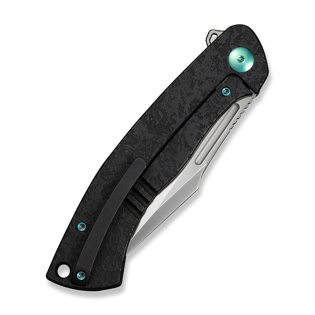 WEKNIFE Essential Knight Flipper Knife Black Titanium Handle With Etched Pattern (3.6" Satin Finished Bohler M390 Blade) WE24003-1